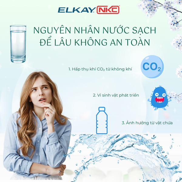 Lưu ý: Với nước lọc từ máy RO Elkay hoặc các dòng máy cao cấp, nước sạch sẽ an toàn tuyệt đối khi mới lọc, nhưng không nên tích trữ lâu hoặc dùng lại nhiều lần.