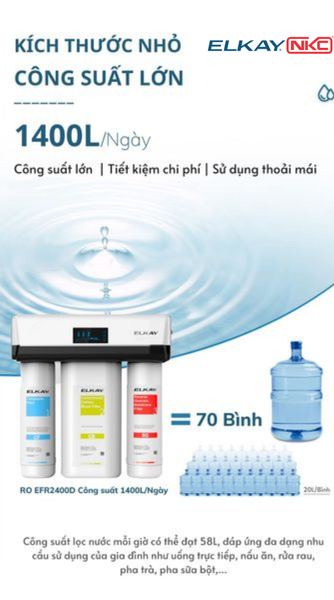 Với chiếc máy lọc nước ELKAY, bạn chỉ cần tốn trung bình 1.327 đồng/lít nước so với nước đóng chai là 3.300 đồng/lít là có ngay nguồn nước sạch an toàn uống trực tiếp tại vòi.